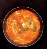 Kurczak smażony po koreańsku na ostro z warzywami,podany z ryżem jaśminowym -